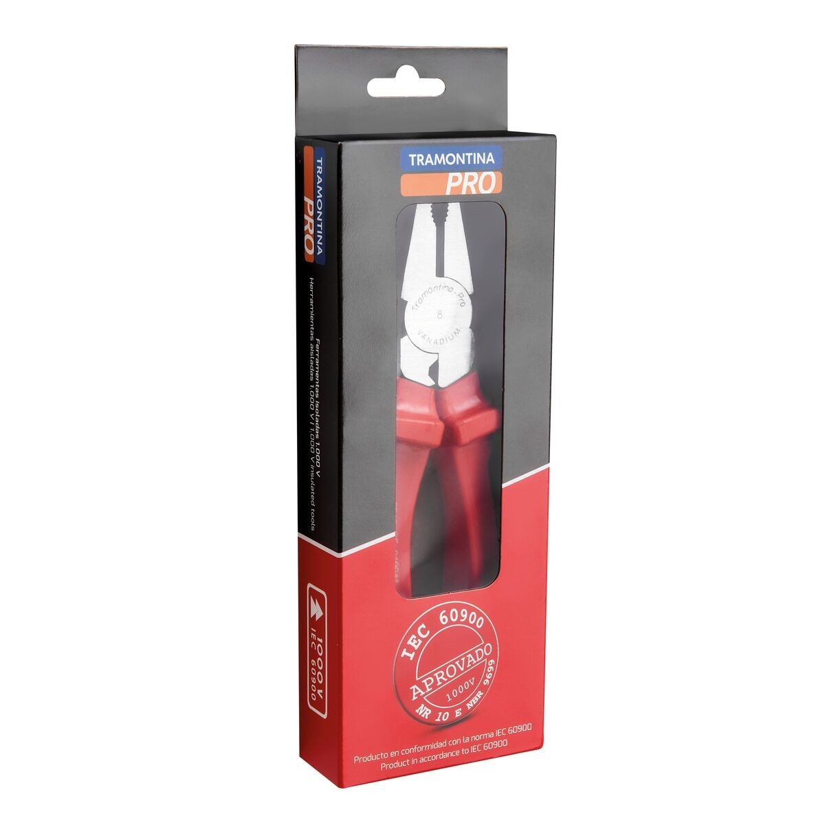La línea de herramientas aisladas IEC 60900 de Tramontina PRO ofrece total seguridad para quienes trabajan con electricidad. Indicadas para actividades de baja tensión, hasta 1.000 volts de corriente alterna y 1.500 volts de corriente directa, cumplen las exigencias de la norma internacional IEC 60900 (equivalente a la EN 60900 europea) y con los requisitos de la NR 10. La línea ofrece llaves fijas, combinadas, estriadas y ajustables, dados y accesorios, pinzas, destornilladores, mini arcos de sierra, cortadoras pelacables y maletines para herramientas. Para garantizar total seguridad a los usuarios, Tramontina prueba todas las piezas fabricadas sometiéndolas a rigurosos ensayos de calidad y de aislamiento eléctrico de 10.000 volts de corriente alterna.