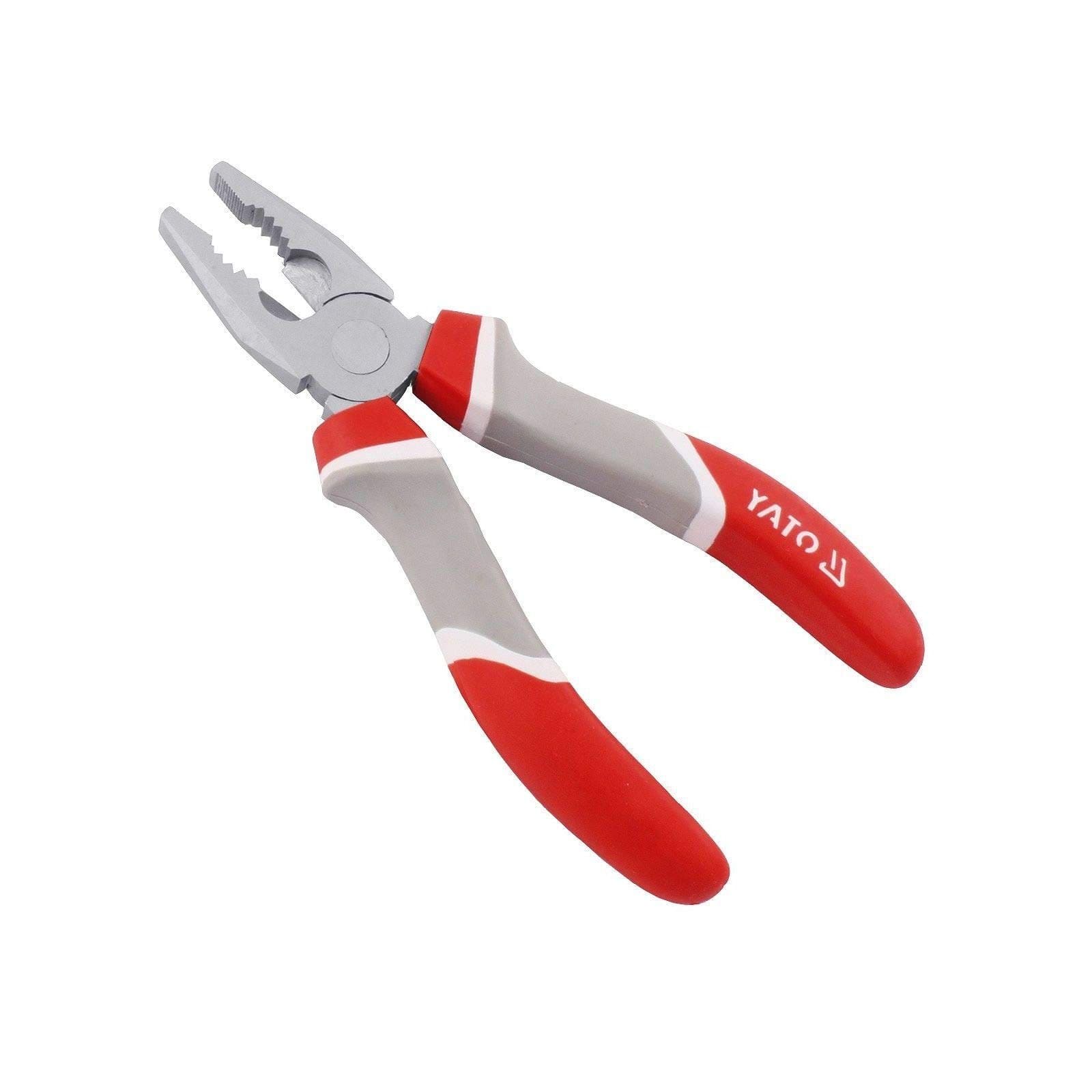 El alicate universal YATO de 7 pulgadas es la herramienta multiusos definitiva para el electricista moderno. Fabricado en acero Cromo Vanadio (CrV 55) forjado, este alicate ha sido sometido a un tratamiento térmico especial en sus cuchillas para alcanzar una dureza de hasta 62 HRC, permitiendo cortar alambres de dureza media y alta con facilidad. Su diseño ergonómico cuenta con mangos de doble inyección antideslizantes que proporcionan comodidad absoluta durante jornadas largas de trabajo, evitando la fatiga de la mano.