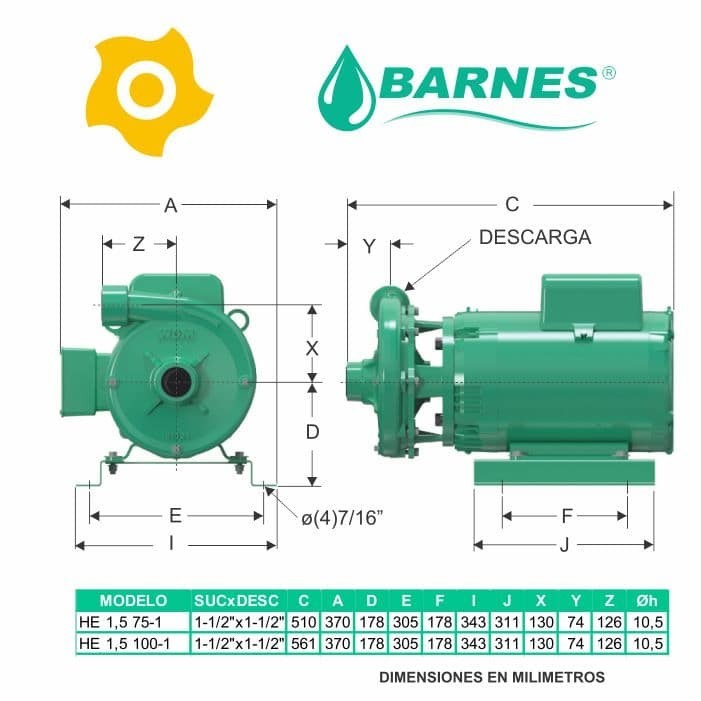 Electrobomba Barnes Alta Presión 1½ x 1½, 7.5 Hp, 1E0514, de estructura en Hierro y Motor eléctrico, para aplicaciones como: Distribución de agua en unidades residenciales, Equipos de trabajo pesado y continuo, Extracción de agua de pozos llanos y profundos, Industria Minera, Industria Petroquímica, Industria Química, Lavado a presión de maquinaria, Lavado de establos, Llenado de tanques elevados, Llenado tanque bajo-tanque alto, Recirculación de agua en torres de enfriamiento, Riego por aspersión, Sistemas contraincendio, Sistemas de presión.