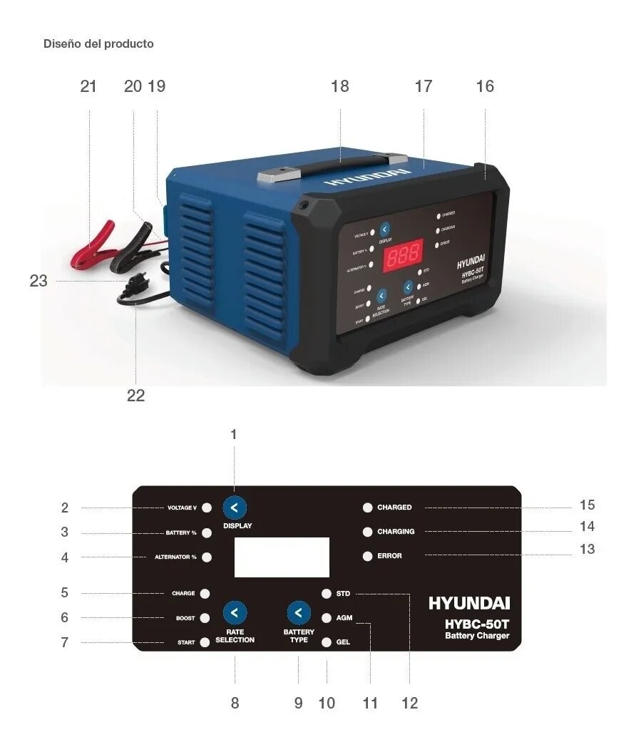 Nombre: ARRANCADOR BATERIAS 6V Y 12VOL HYUNDAI 110V AC HYBC50T