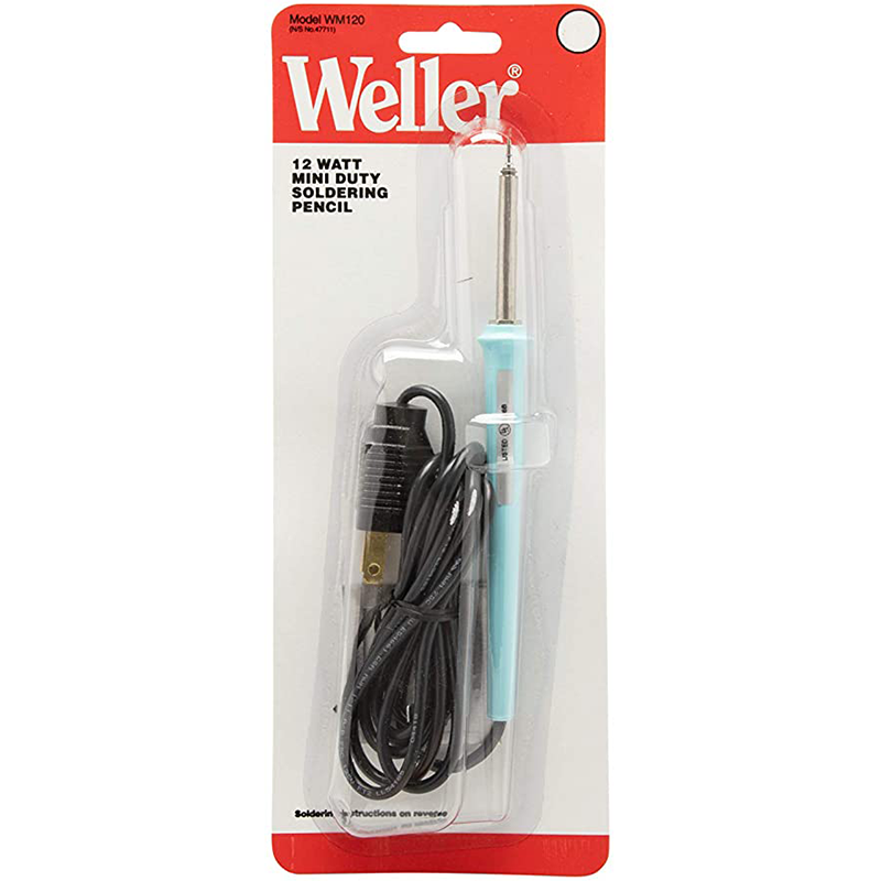 El WM120 es un cautín tipo lápiz delgado con potencia de salida de 12W y voltaje de suministro de 120V. Cautín tipo lápiz delgado y ligero con mango que no se calienta, diseñado para soldar componentes en miniatura, la punta alcanza una temperatura de 800°F, enchufe con conexión a tierra de 3 alambres, usa puntas auto deslizantes de Weller serie MP.