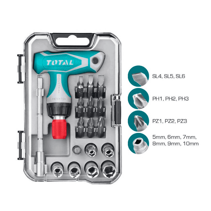 • 1 llave inglesa con mango en T, destornillador, mango de carraca.