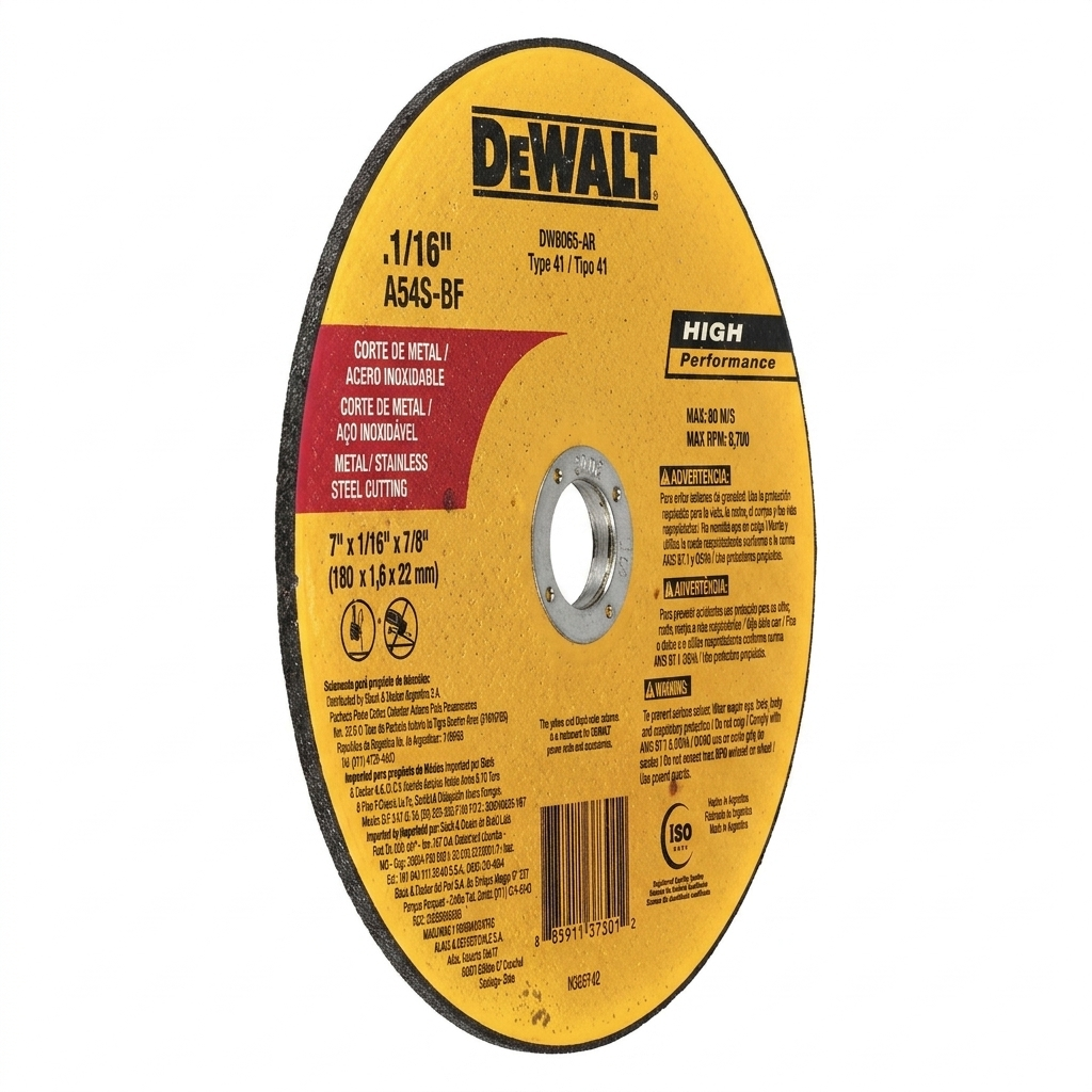 DISCO DE CORTE ACERO INOXIDABLE 7" x 1/16" x 7/8" DEWALTDISCO DE CORTE ACERO INOXIDABLE 7″ x 1/16″ x 7/8″ DEWALT