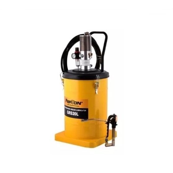 El Engrasador Neumático Industrial 40 Lbs Ferton GRS40L, tiene características como estas: Tambor metálico con ruedas y manilla que facilita su traslado. Pistola metálica estriada con palanca plástica ergonométrica. Manguera de para alta presión. Reloj medidor de presión MODELO : GRS40L. TIPO: Neumática. CAPACIDAD: 40 lbs MATERIAL : Metálico. CONTENIDO : 1 engrasadora neumática. COLOR : Amarillo. ORIGEN : Importado.