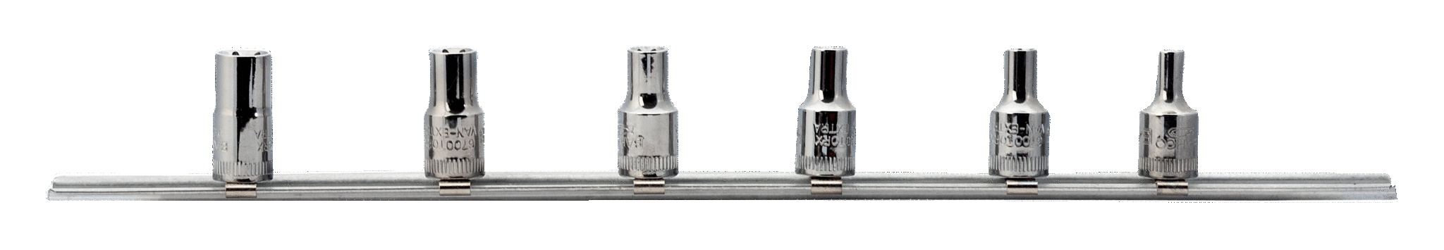 JGO DE SOLO COPAS DE 1/4 TORX HEMBRA DE E4 A E10 EN RIELJGO DE SOLO COPAS DE 1/4 TORX HEMBRA DE E4 A E10 EN RIEL