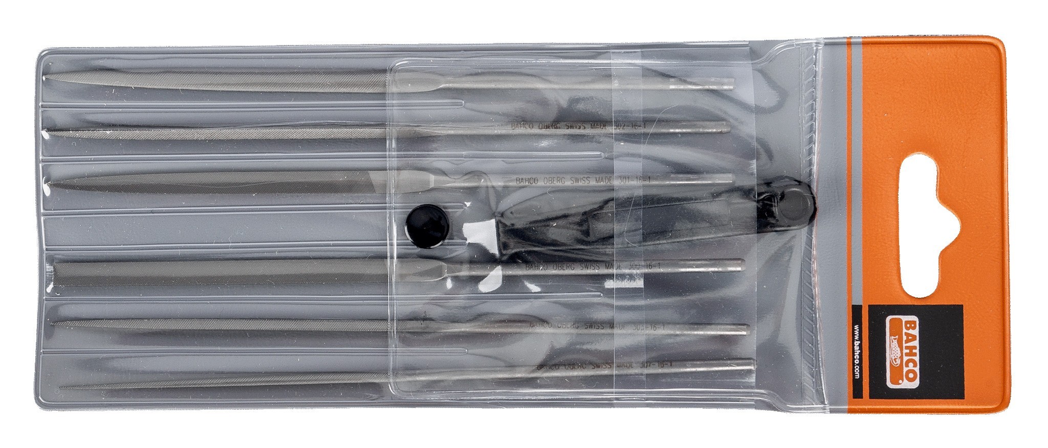 - Contiene una cada uno: plana, plana cónica, media caña, redonda, triangular y cuadrada