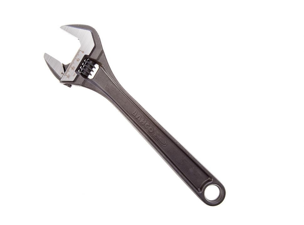 Llave ajustable Bahco serie 80. Posee maxima apertura indicada en el mango, para una rapida determinacion de la medida apropiada. Escala de medida para una rapida observacion de los tamaños de los pernos. Mecanismo de apertura firme, preciso y de facil deslizamiento gracias al amplio perfil de ranura y un tornillo de ajuste de estirado ancho. La mordaza movil ajustable no falla incluso en la posicion de maxima apertura de la llave. Permite mejor acceso. Mas robustez que la estipulada en los estandares internacionales ISO.
