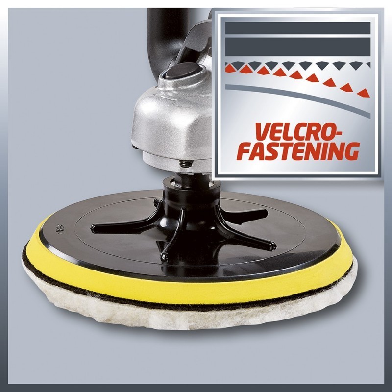 La Polichadora Einhell CC-PO 1100/2 E es el potente, robusto y práctico dispositivo experto de pulido y polichado. Es ideal para polichar superficies barnizadas, así como para el pulido de madera, plásticos y metales. Gracias a su agarre suave, este dispositivo puede manejarse de manera segura en cualquier momento, y las operaciones como pulido de autos se pueden realizar de manera rápida y exhaustiva. Para el cuidado del barniz, el gran mango adicional permite un mejor control y resultados precisos. Mediante el control de velocidad electrónico finamente ajustable, la velocidad de los accesorios de pulido o esmerilado se puede adaptar de manera óptima a la superficie que se procesa. Con el práctico bloqueo del husillo, el husillo se puede bloquear sin herramientas. Por lo tanto, el disco de pulido en el polichador se puede cambiar rápida y fácilmente. El disco de pulido está equipado con un agarre especial de micro hook and loop para fijar los accesorios de pulido y esmerilado de forma segura en la amoladora eléctrica y para evitar la entrada de polvo entre el disco y el papel de esmerilado. Los accesorios de polichado y pulido aún pueden aflojarse fácilmente y pueden cambiarse rápidamente si se solicita. Los accesorios integrales de polichado y pulido consisten en 1 accesorio de espuma para pulido de automóviles, 1 tapa de pulido sintético y discos de papel abrasivo de granulación 60, 80 y 120 con 1 de cada uno.
