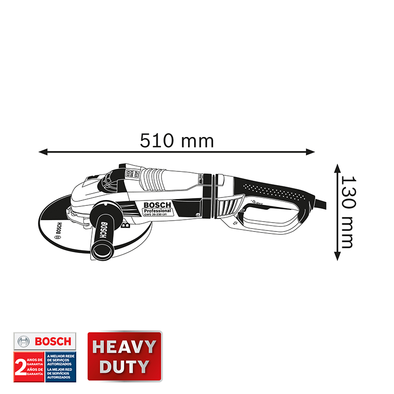 La Pulidora GWS 26-230 es indicada para uso industrial y cuenta con el sello Heavy Duty que proporciona 2 años de garantía.