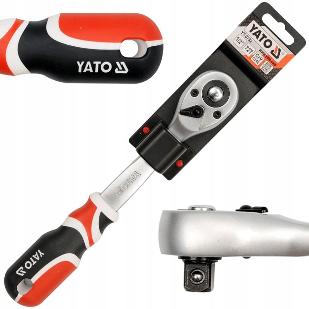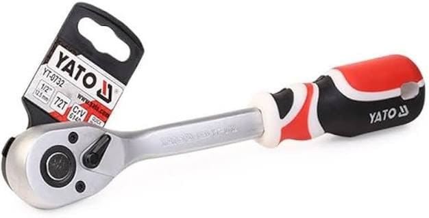 Rachet profesional tipo pera marca YATO de 1/2″. Fabricado en Cromo Vanadio (CrV 6140) con 72 dientes para máxima precisión. Incluye mango ergonómico y botón de liberación rápida. Calidad industrial para mecánica pesada.