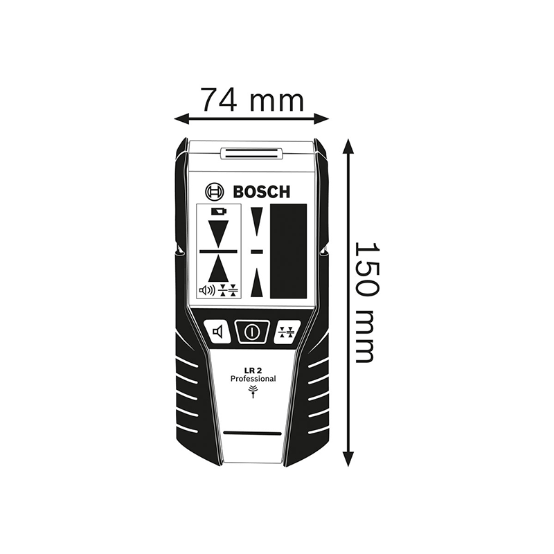 El Receptor para Niveles Bosch LR2, fue desarrollado para trabajar juntamente con los Niveles a láser rotativos de Bosch (GLL 3-50), permitiendo de esta manera trabajos en ambientes externos y con gran incidencia de luz, incluso donde usted no pueda visualizar el láser, garantizando de esta manera exactitud en los servicios realizados.