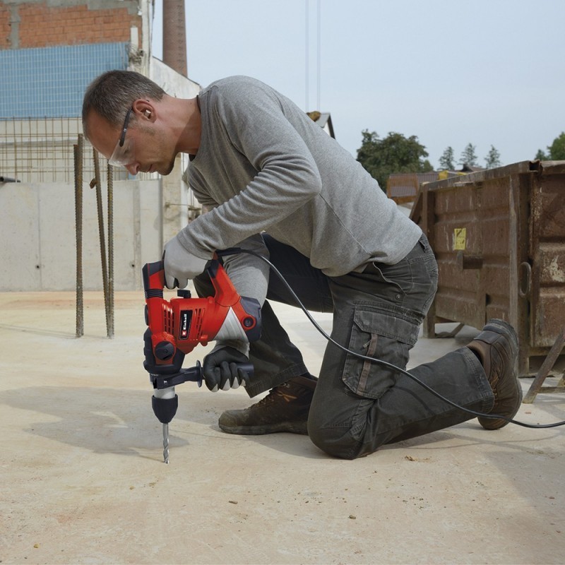El rotomartillo Einhell TC-RH 900 está a la altura de cualquier desafío en el sitio de construcción doméstica, ya sea taladrado, cincelado o incluso cincelado y arrancado. Gracias a sus tres funciones integradas de perforación, perforación con martillo y cincelado con fijación, el poderoso ayudante elimina incluso las tareas más exigentes en el hogar, la casa y el patio gracias a 900 vatios de potencia y una velocidad de hasta 4,000 min-1. Traductor de ideas, hogar y artesano casi sin esfuerzo. Por lo tanto, para un trabajo cómodo se han diseñado grandes superficies de agarre suave. El mecanismo de impacto neumático asegura una muy buena propulsión. El acanalado práctico permite que el mango adicional se fije de forma segura. El tope de profundidad de perforación infinitamente ajustable consiste en metal sólido. Un acoplamiento de sobrecarga sirve para aumentar la seguridad del usuario. Equipado con un robusto portaherramientas SDS-plus y un robusto cabezal de engranaje de aluminio, el martillo rotativo Einhell está diseñado para durar. La entrega se realiza en un práctico maletín de transporte y almacenamiento.