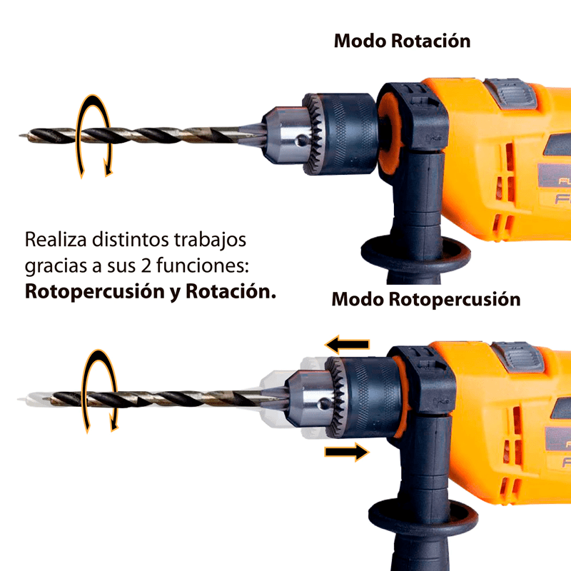 •  Diámetro del mandril: 1/2 – 13mm.